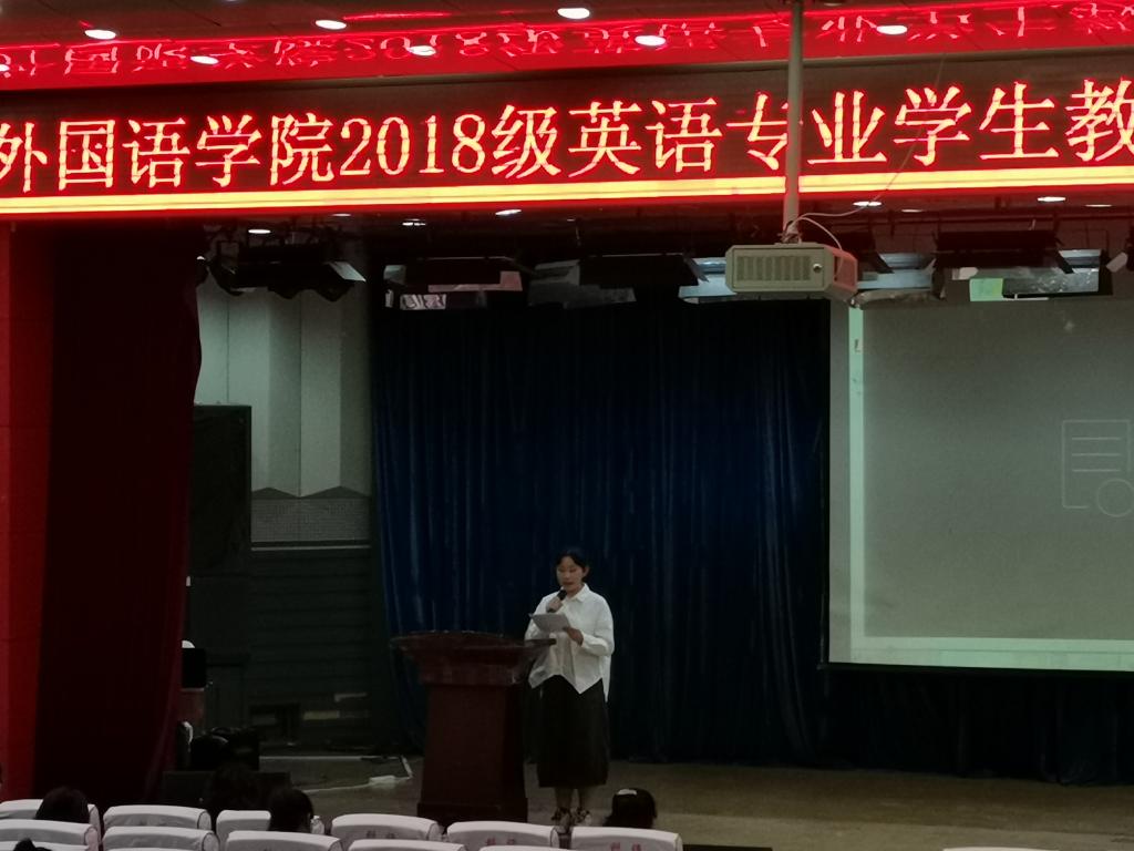 大会第二项由tyc1286太阳成集团的邵丽君书记、崔海英经理和罗学锋副经理分别讲话。三位领导对英语2018级员工的教育实习表现都给予了充分的肯定,并就如何当好一名英语教师跟同学们分享了自己的感受和经验,最后对大家提出了殷切的希望,鼓励大家在知识、能力、素养方面不断提升自己,为家乡的教育事业贡献自己的力量。