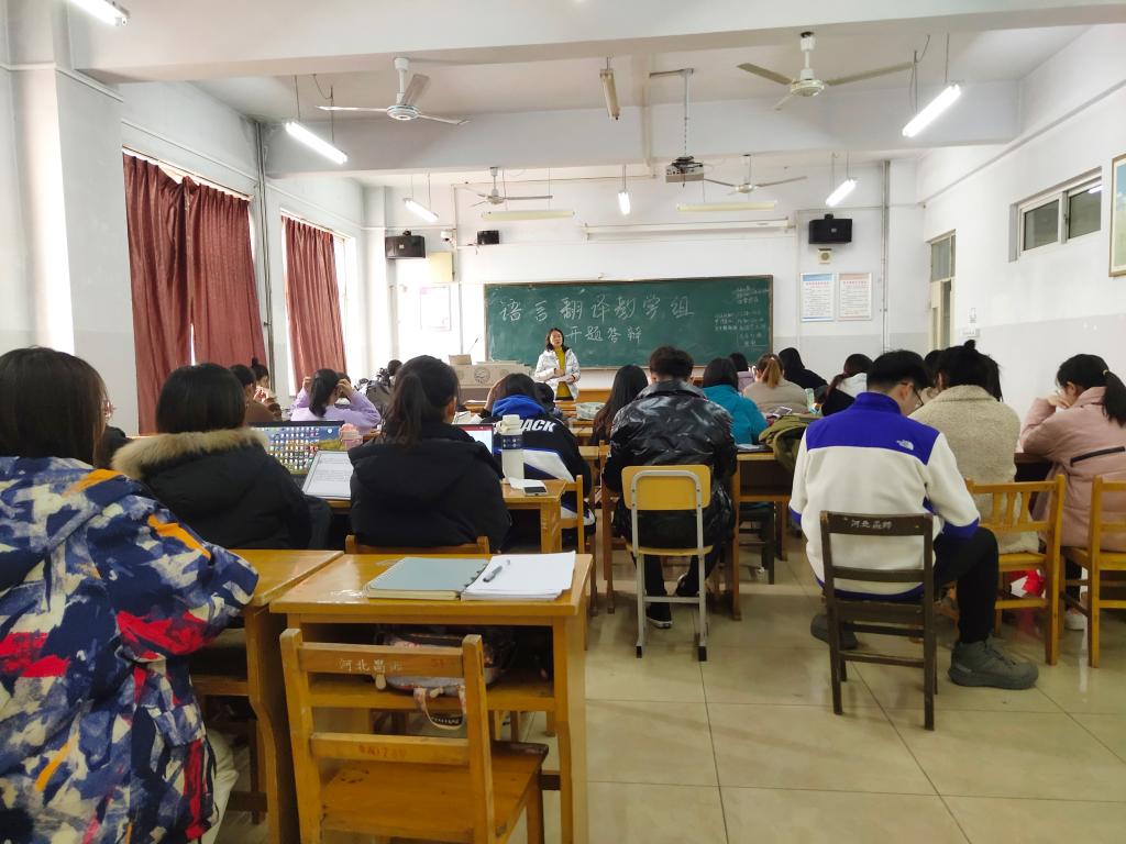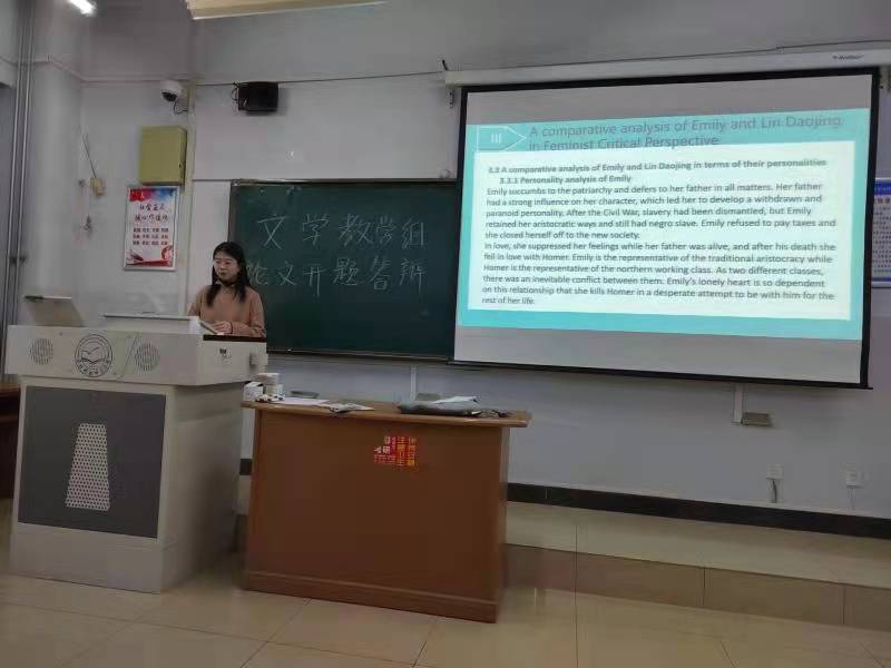 2021年11月30日和12月2日,tyc1286太阳成集团英语教学部组织英语专业2018级员工进行了毕业论文开题答辩。11月30日下午,教学法1组和教学法2组答辩在综合楼318和406举行;12月2日,语言学翻译教学组和文学教学组在419举行。
