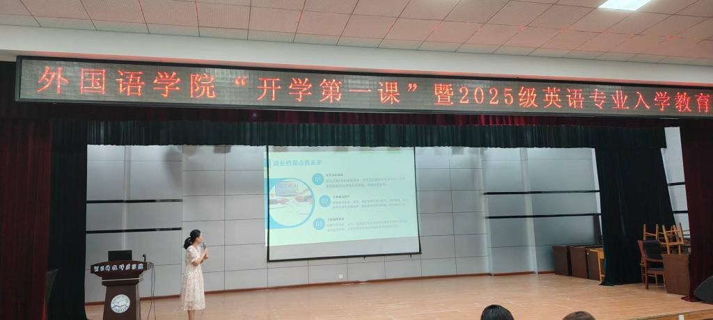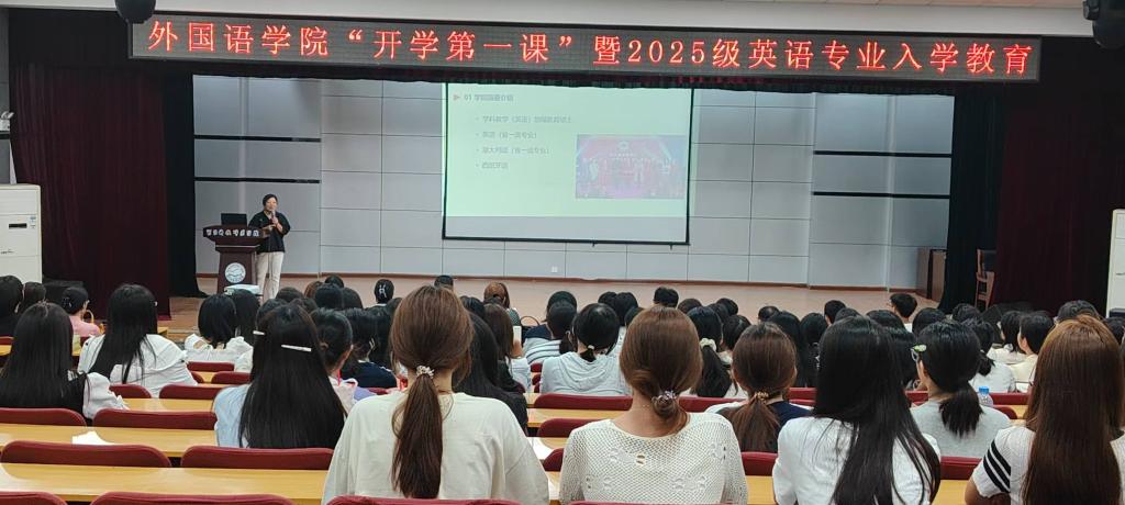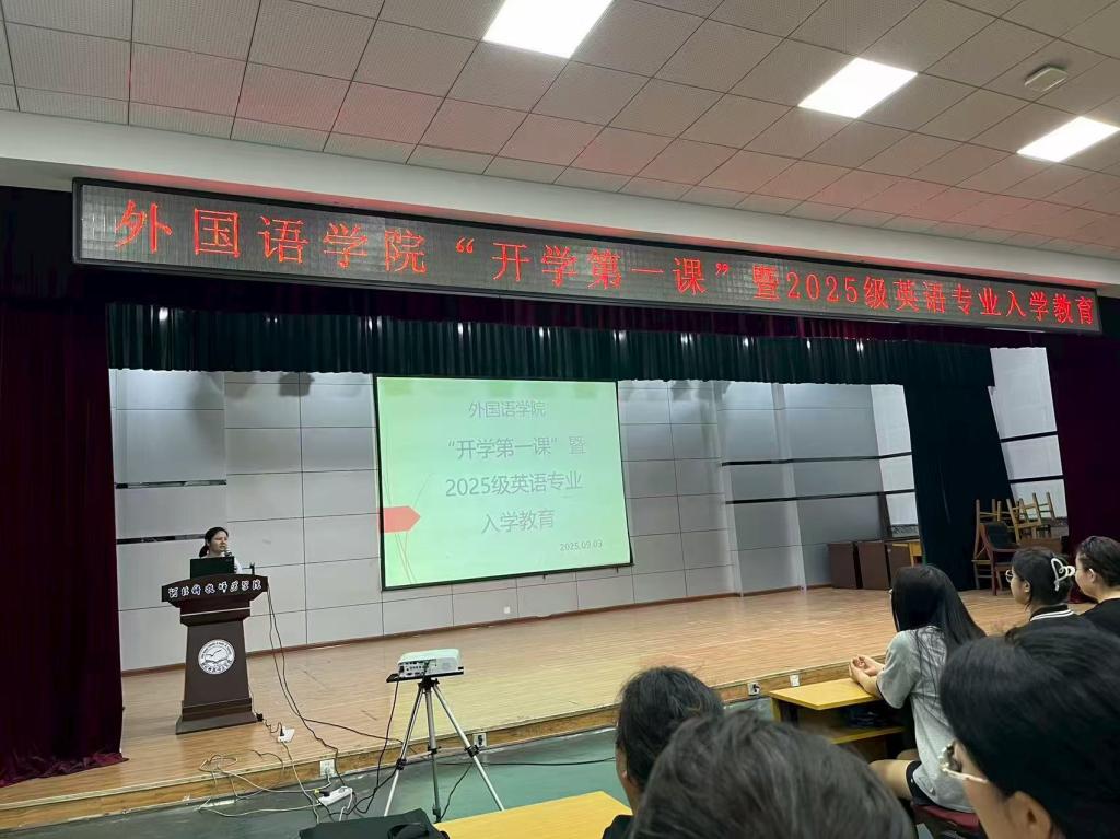2025年9月3日,tyc1286太阳成集团在秦皇岛校区多功能厅成功举办“开学第一课”暨2025级英语专业入学教育,2025级新生及英语专业骨干教师与会。