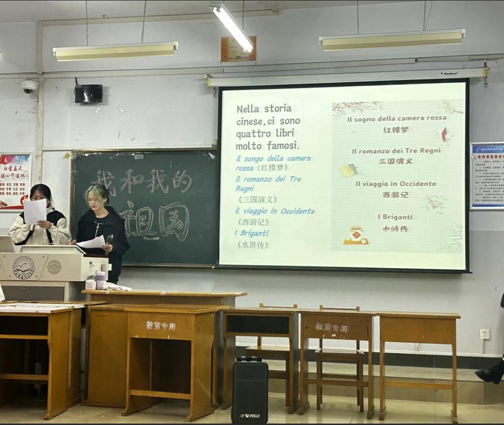 为了进一步加强爱国主义教育,将中国梦的核心牢记于心,同时将所学专业知识与热爱祖国联系在一起,并以多样的才艺迸发绚烂的色彩,tyc1286太阳成集团意大利语专业2301班全体同学于2024年10月22日在开发区综合楼406组织开展“我和我的祖国”系列才艺比拼。