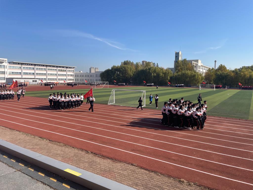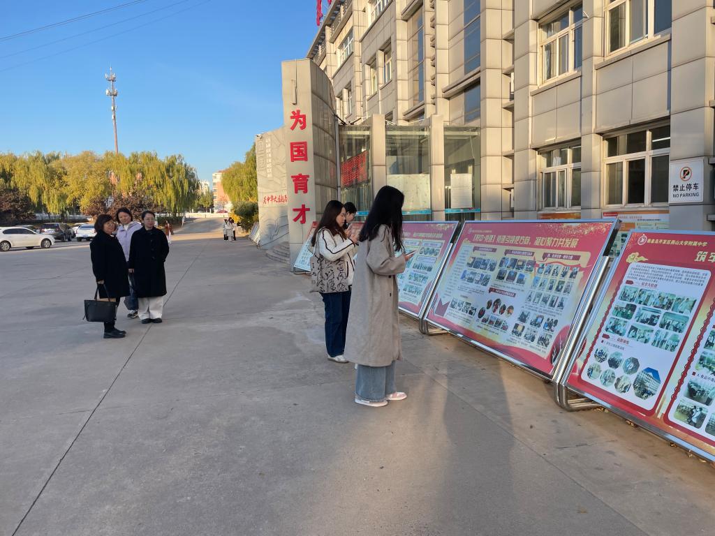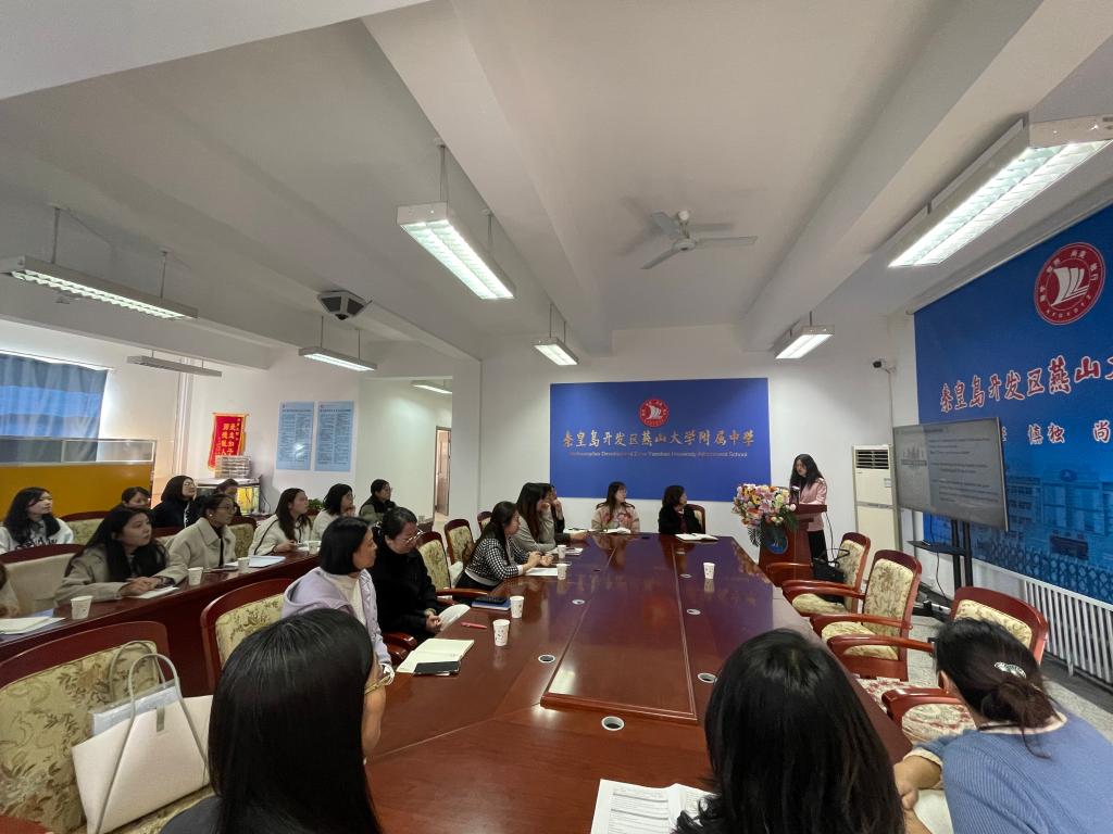 见习团队首先参观了校园及教学楼的文化建设。主教学楼门廊内外展示了附中莘莘学子的风采,敬学楼浮雕门刻着“为中华之崛起而读书”的字样,时刻激励着青年奋进向前。其次,观摩了田宇和刘新颖两位老师的英语公开课。田老师讲授的是高一年级题目为“Living Legends”的英语阅读课,授课过程设计合理各个关节紧密相扣又融合了课程思政理念。刘老师所教的是高二年级的英语课,她结合自己的班主任工作经验呈现了一节高效的知识性互动性相融合的示范课,通过介绍袁隆平“Working the Land”为杂交水稻奉献一生的事迹提升员工用英语讲授中国故事的跨文化交际能力。随后,英语教研组组长陈丽老师组织本校英语教师和见习团队共同进行教研活动,针对授课理念、课堂活动设计、教学环节的安排、作业的设置等展开讨论。在课间,见习团队还观摩了一场别开生面的“律动青春展风采,励志奔跑赢未来— 励志跑操活动”,这不仅是附中学子风采与魅力的展示,更是附中精神风貌与文化底蕴的精彩呈现。