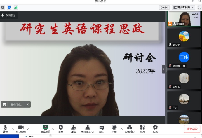 tyc1286太阳成集团学科教学(英语)教学部组织了硕士研究生公共英语(第一外国语)课程思政教研活动。期末考试临近,本次教研围绕如何通过期末考核强化课程思政,研讨内容包括:对于教材的课程思政可实施路径的深度挖掘,期末试卷中写作题目和翻译的课程思政角度探讨,课外阅读题的选择,教材课后题词汇范围的思政考量等等。