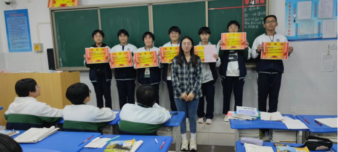 指导老师教学经验丰富,教学能力强,给与实习生很多帮助与指导。实习生每天都有听课任务,每天至少听一节课,边听边学边教,收获颇丰。该校各年级英语教研组每周都会有教学研修活动以及新课标研读活动,教研主题包括“英语创新作业设计的研究”、“基于素养培养的初中英语阅读教学策略思考”等,任课教师们互相交流教学进度,安排教学计划。