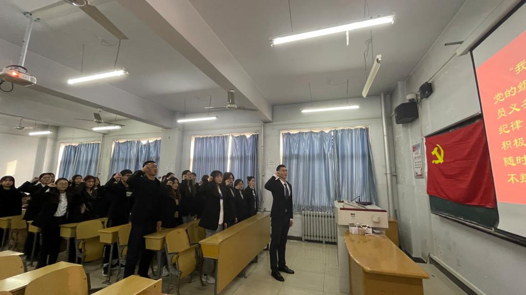 通过支部大会讨论和无记名投票表决的方式,同意赵嘉莉同志转为正式党员、接受何梓萌等24名同志为预备党员。并由党支部书记郭迪哲同志带领24位预备党员在党旗下庄严宣誓,振奋人心的誓词感染在场的每一个人。会议最后,陈攀峰同志对此次支部大会做总结和指导,鼓励各位党员同志再接再厉,今后要以更高的标准严格要求自己,以梦为马,不负韶华。(审核人:邵丽君)