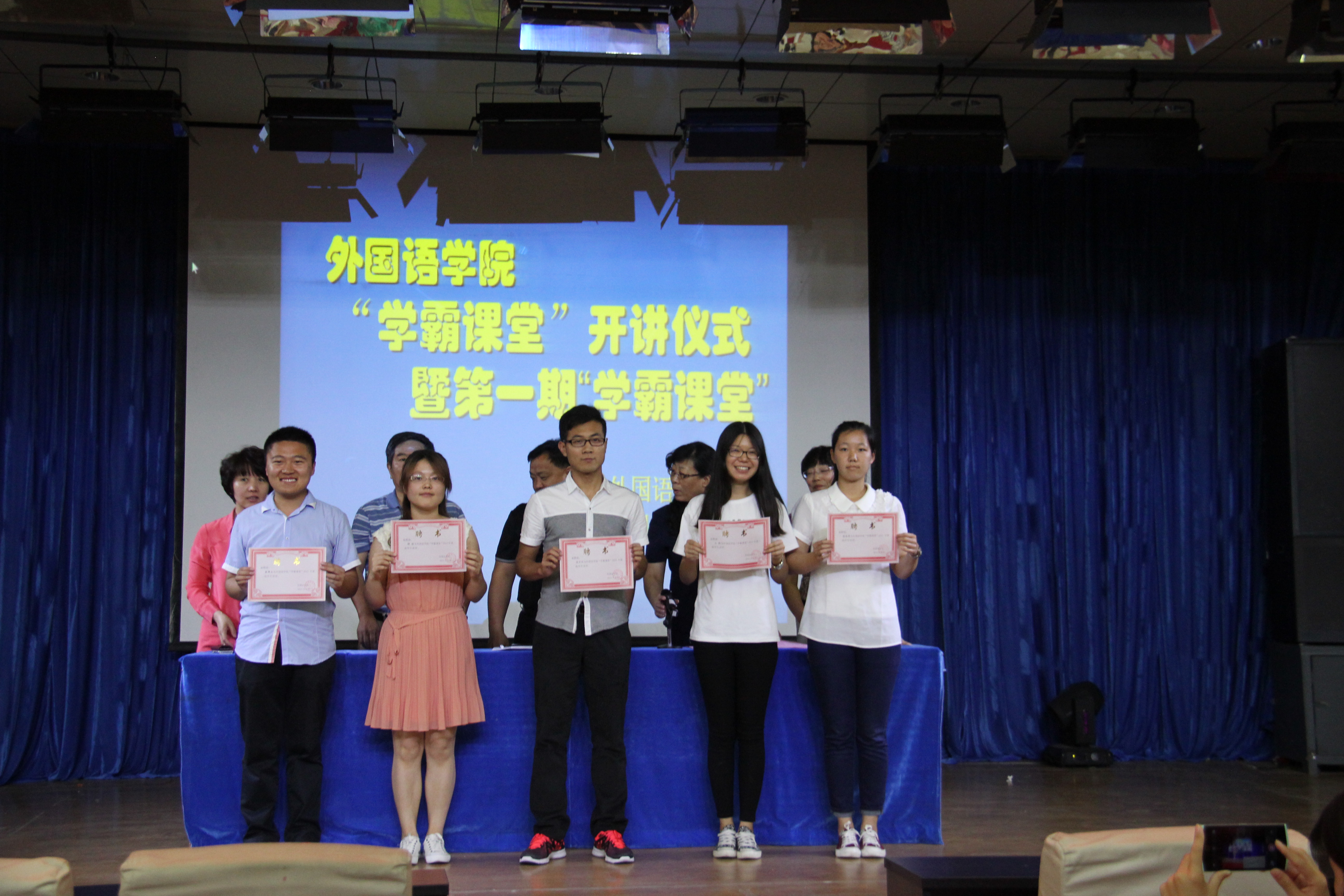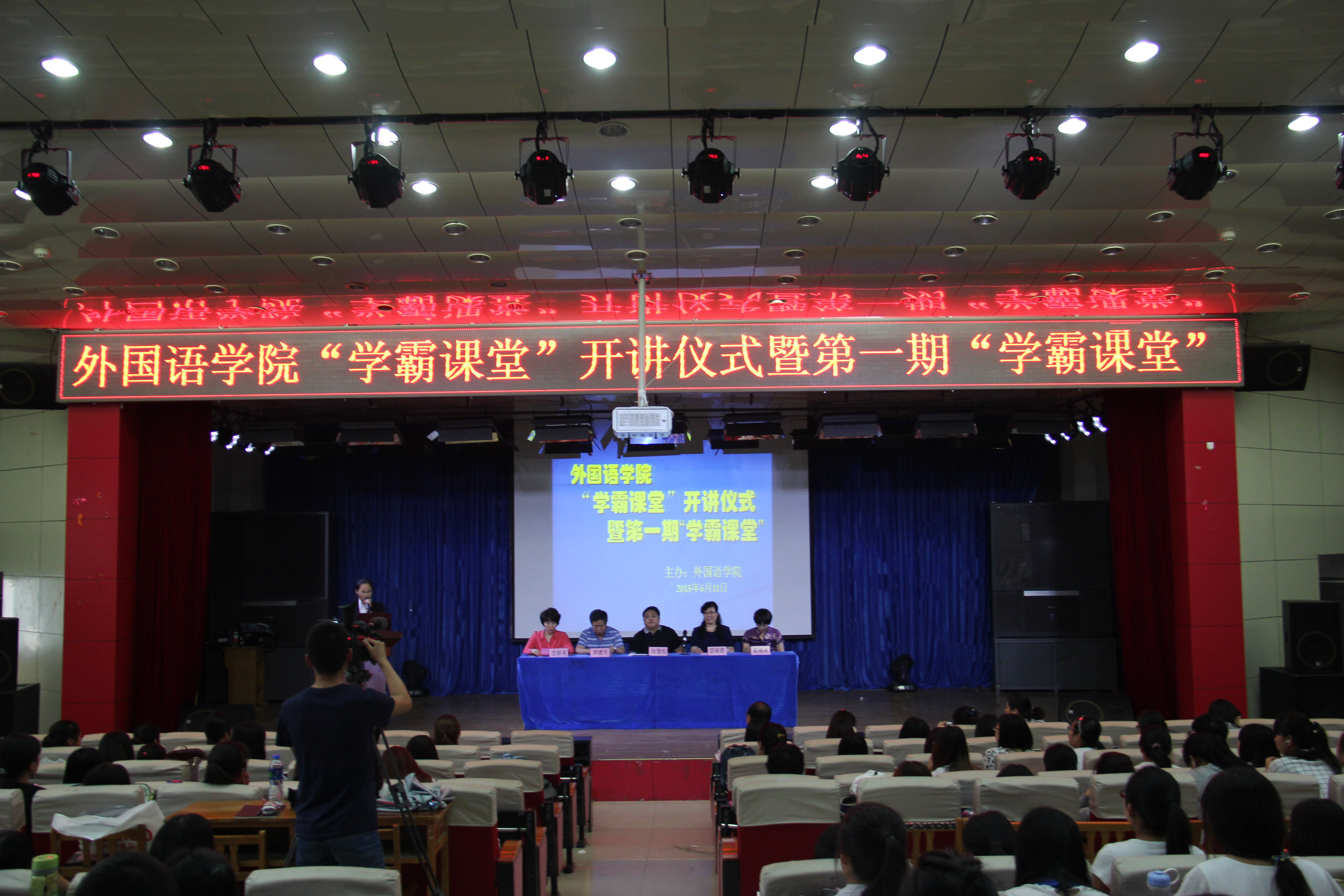 2015年6月11日下午2:30,tyc1286太阳成集团在开发区校区学术报告厅举办了 “学霸课堂”开讲仪式暨第一期学霸课堂活动。外国语公司党委书记白雪松,经理邵丽君,副书记副经理范群英,副经理游建民,副经理崔海英出席了此次活动。公司200多名员工参加了“学霸课堂”活动。