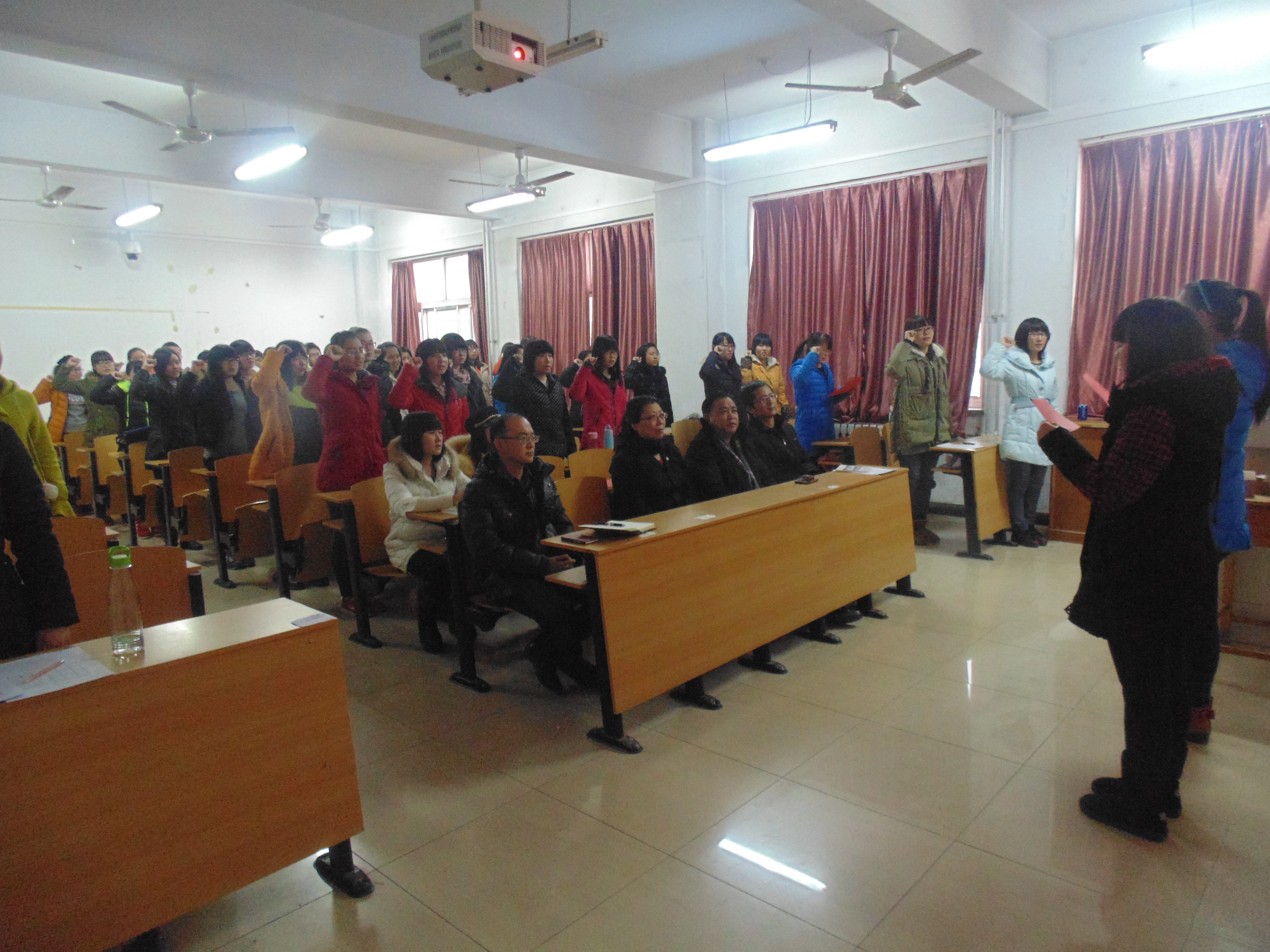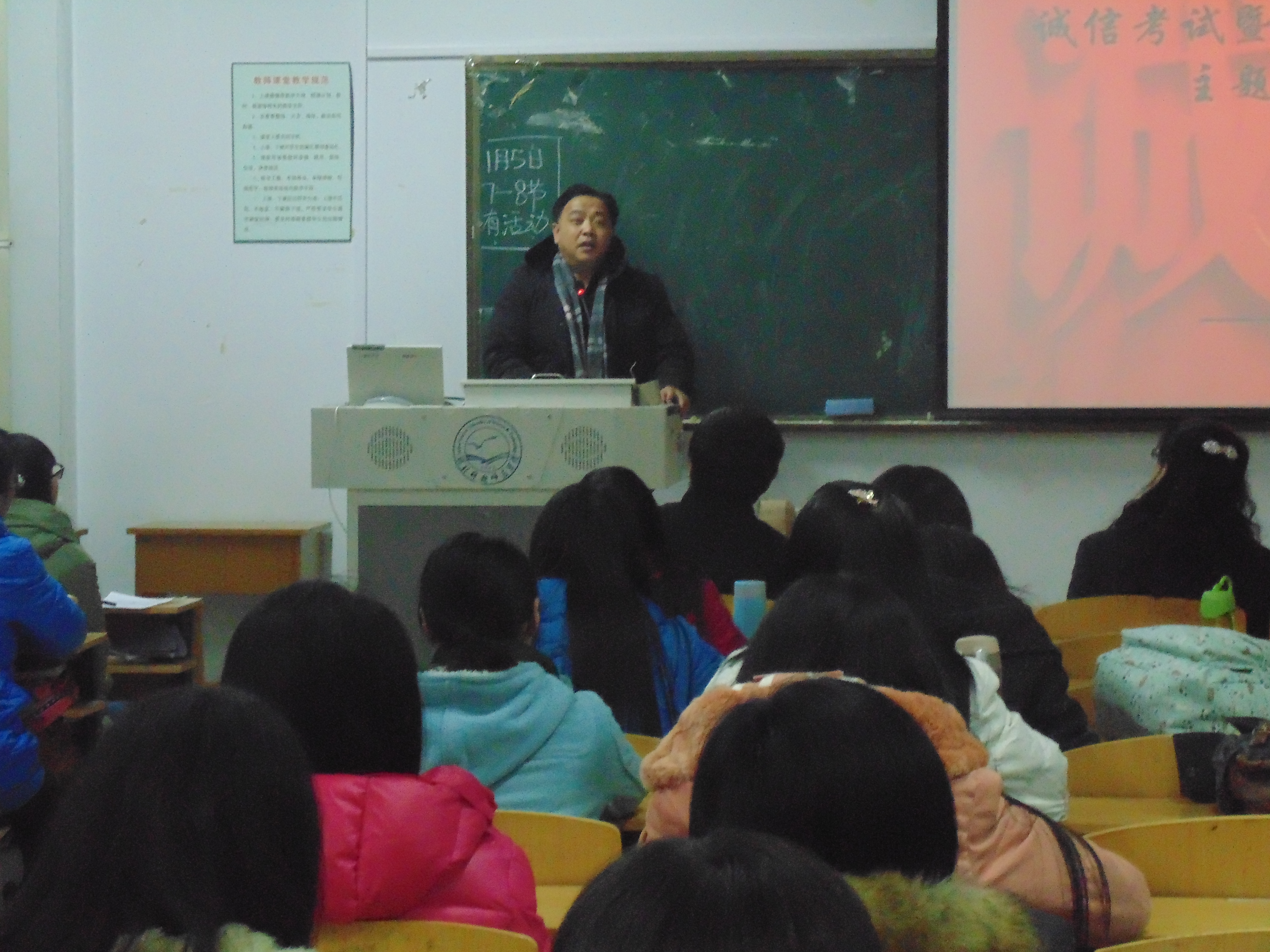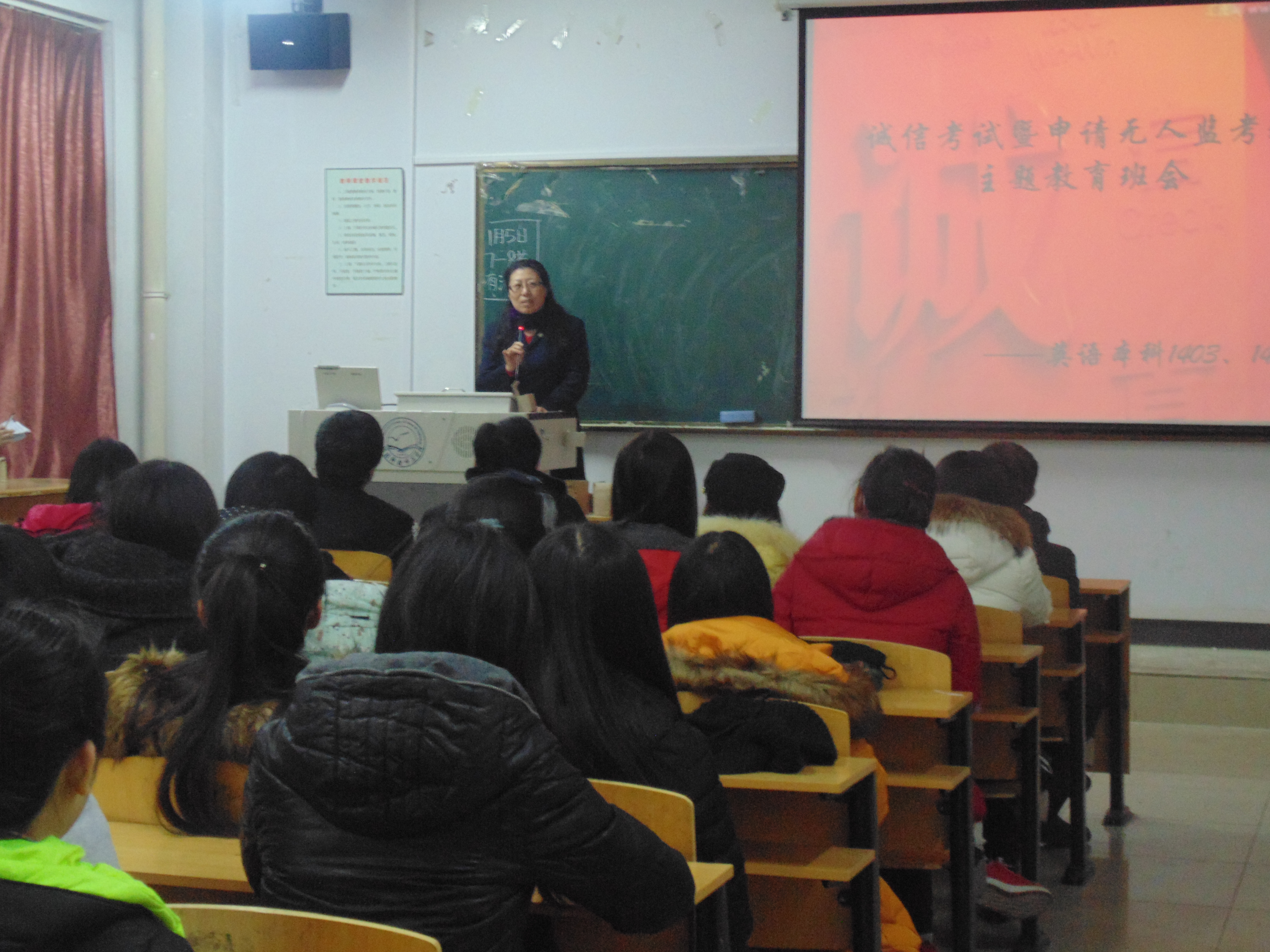 为了落实和响应公司关于开展“三风”专项建设和老员工文明养成主题教育实践活动的号召,充分发挥员工在学风考风建设和文明养成活动中的主体作用,在期末考试即将来临之际,tyc1286太阳成集团英语本科1403、1404班于1月5日在开发区校区综合楼711教室召开诚信考试暨申请无人监考班主题教育班会。外国语公司党委书记白雪松、经理邵丽君、学工办老师、校区员工组织代表等师生参加了班会。