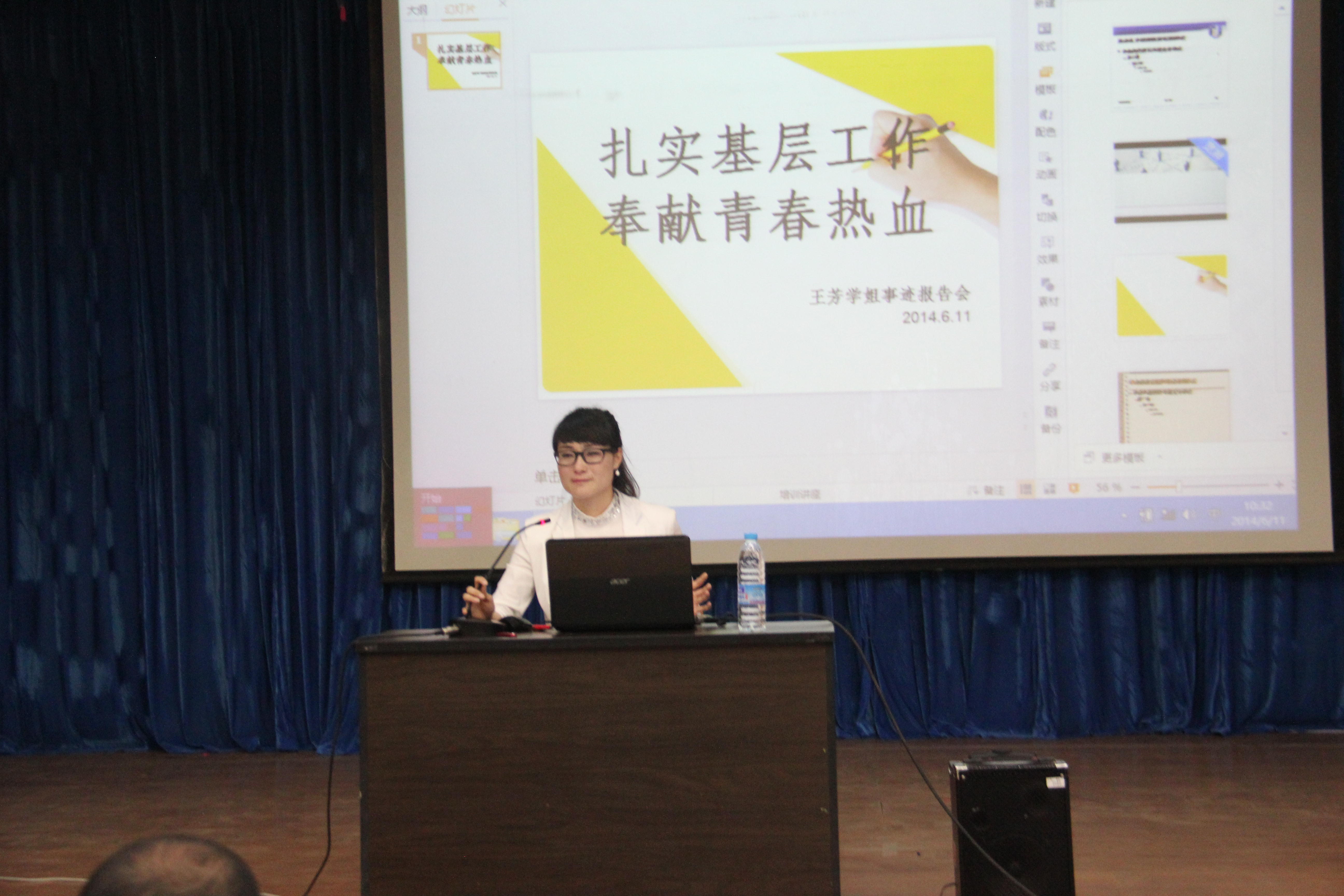 近日,公司tyc1286太阳成集团邀请2010届英语专业优秀毕业生王芳回母校作事迹报告。tyc1286太阳成集团的党政负责同志和师生400余人参加了本次事迹报告会。在报告中,王芳结合自身基层村官工作经历,通过生动形象的语言讲述了自己如何融入乡村管理工作,如何脚踏实地开展群众谈心谈话工作,如何坚定信念主动学习,获得英武山村群众的高度认可,全票当选为英武山村第一任女村主任的经历。她朴实生动的话语感染着在场的每一位师生,赢得了阵阵掌声。王芳在报告中讲到:“自己认准的目标,一定要坚持到底”;“自己认准的目标,一定要努力奋斗”;“ 在工作中,皮肤晒黑了,心却红了”。王芳的精彩报告为现场的师生进行了一次刻骨铭心的心灵洗礼,让我们感受到一名优秀村官一心为民,踏实工作的精神力量。参加报告会的毕业生都深受感动和鼓舞,很多同学激动地说,王芳师姐为同学们做出了榜样,我们也希望向她一样能在祖国最需要的地方建功立业,创出属于自己的辉煌人生。