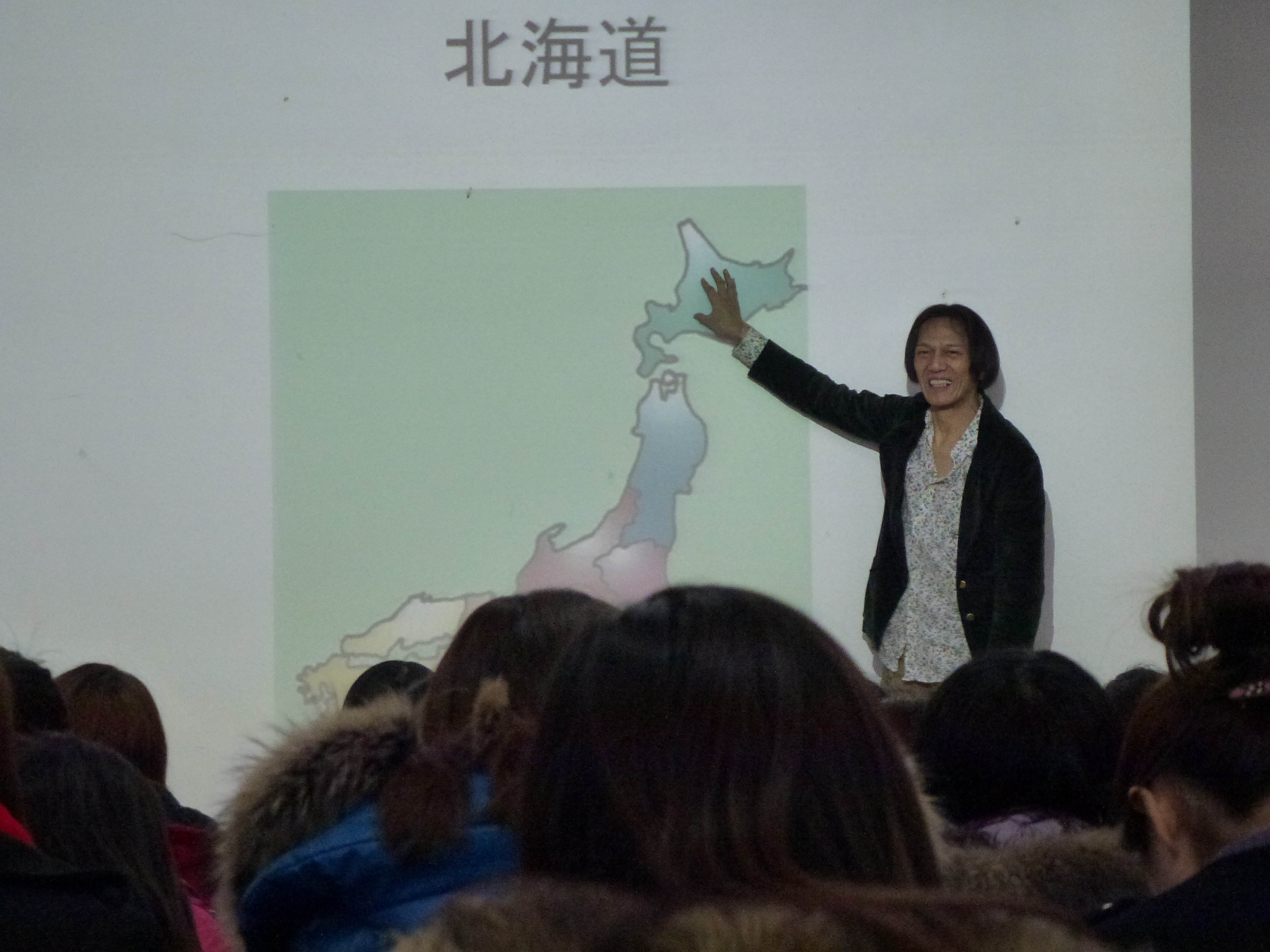 2012年11月24日,tyc1286太阳成集团邀请日本学者小林寿绪先生来公司讲学。应用日语专业师生参加了讲座。该讲座主要介绍日本国内存在的地域性差异,具体围绕着关东(东京)、关西(大阪)、中部(名古屋)、北海道(札幌)、九州(福冈)等地区来讲述日本人的思维方式、行为方式、生活习惯等方面的不同。讲座内容贴近日本真实生活,因而能够加强日语专业员工对日本的了解,进一步促进日语语言及日本文化的学习。