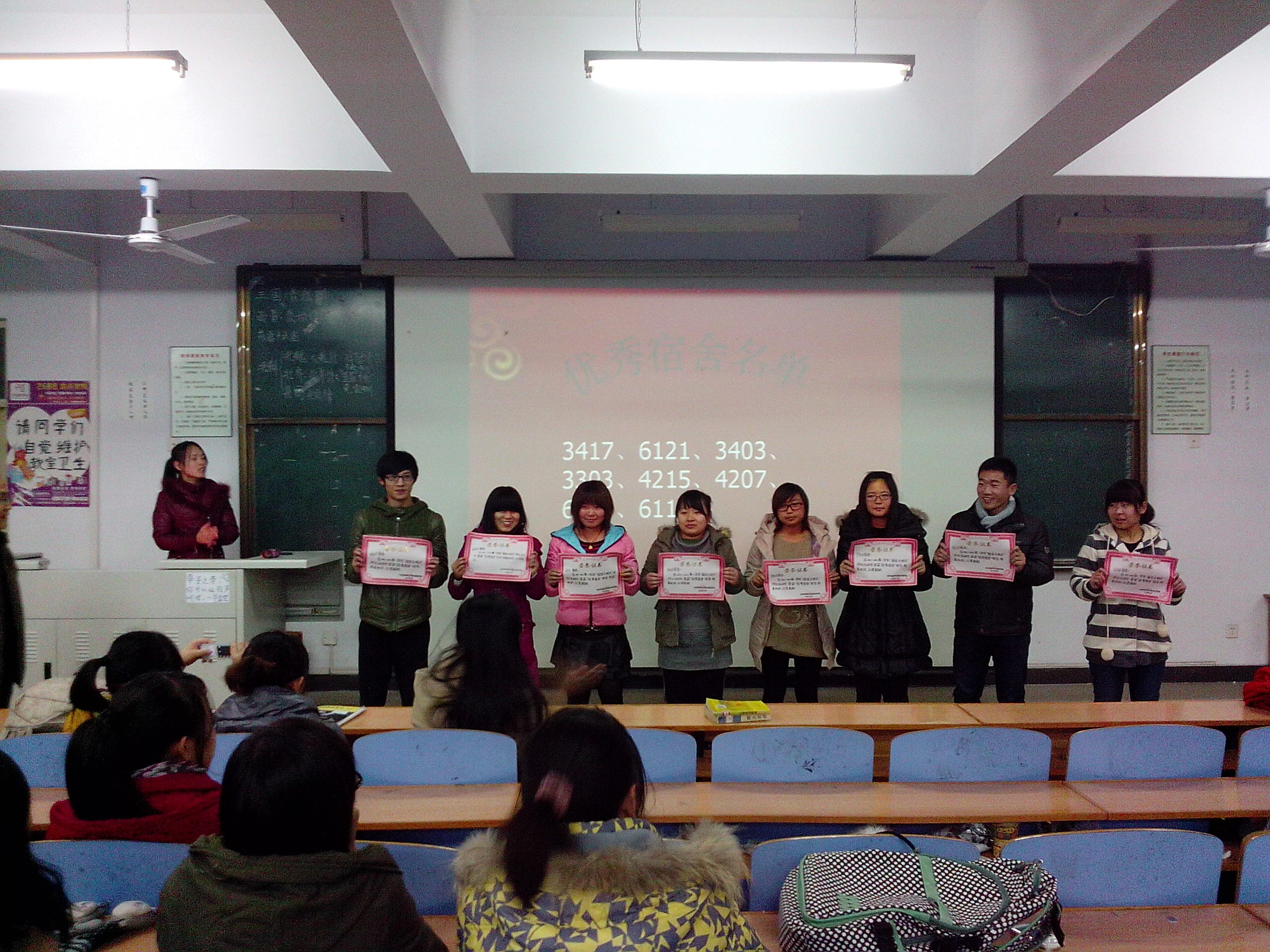 为了丰富校园文化活动,创造美好生活空间,进一步营造温馨舒适的宿舍文化生活环境,增强同学们之间的交流。2012年12月5日晚6:00,tyc1286太阳成集团在综合楼312举行了优秀宿舍表彰大会。tyc1286太阳成集团学工办田辉老师,各班班长、团支书、生活委参加了本次表彰大会。
