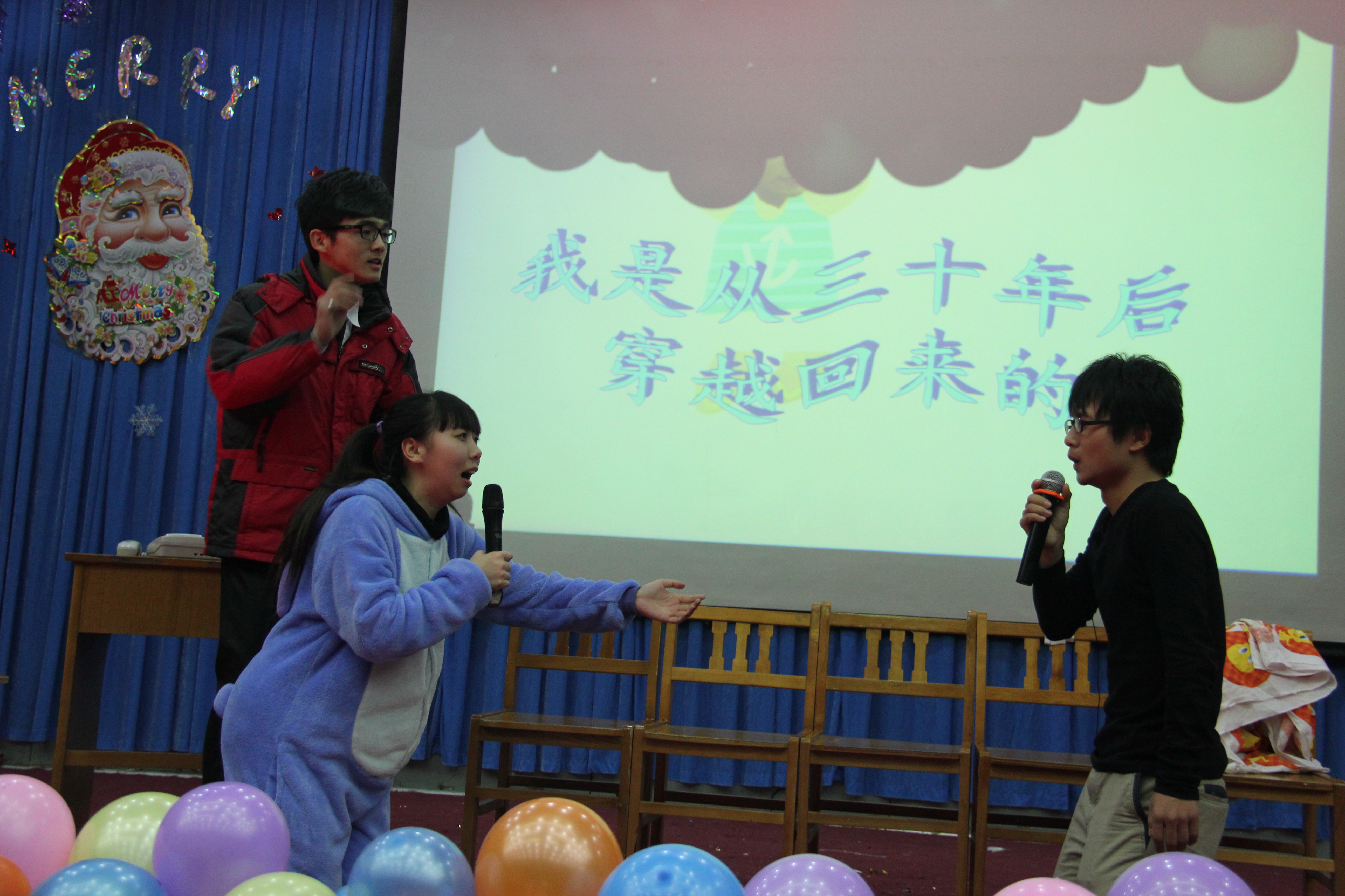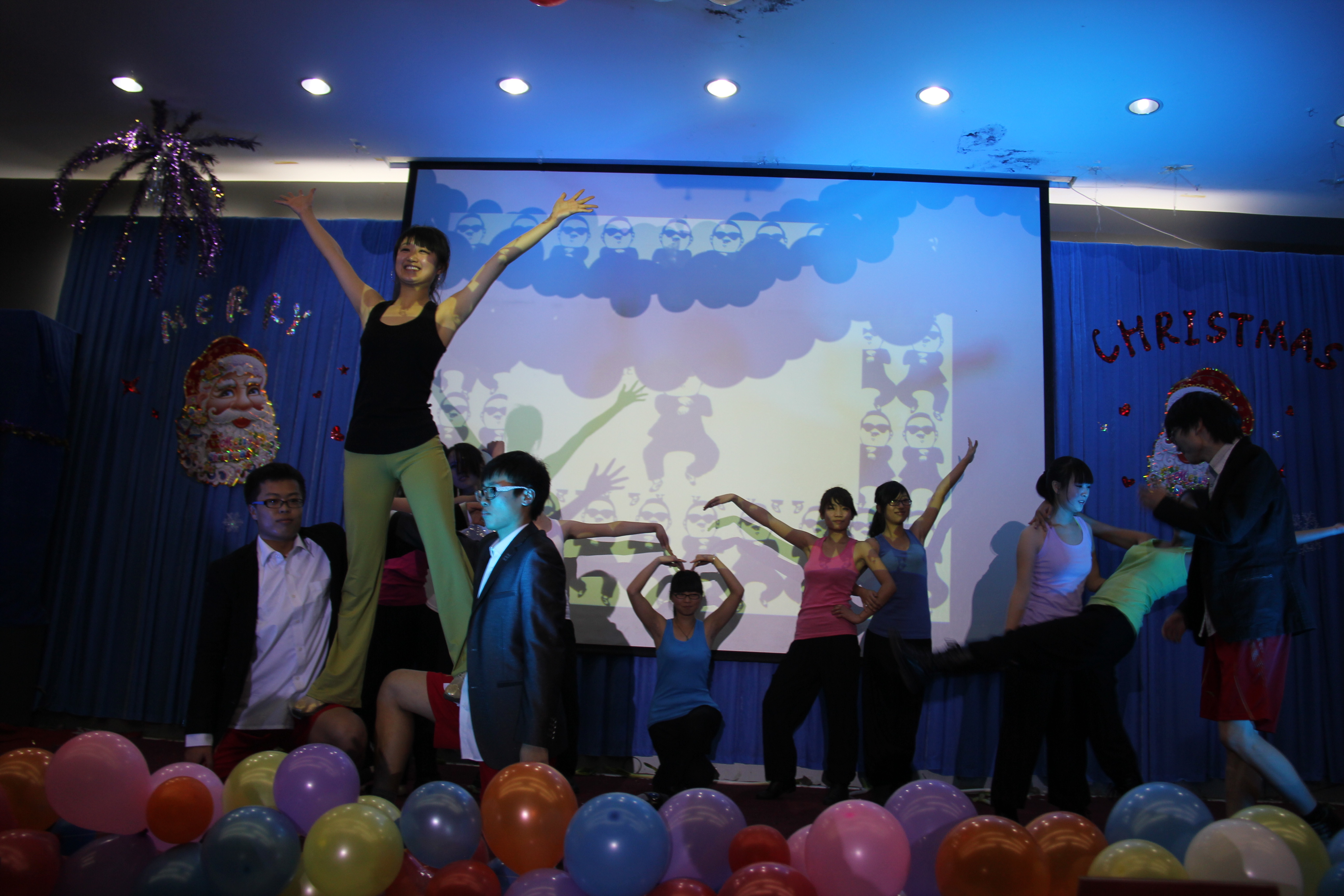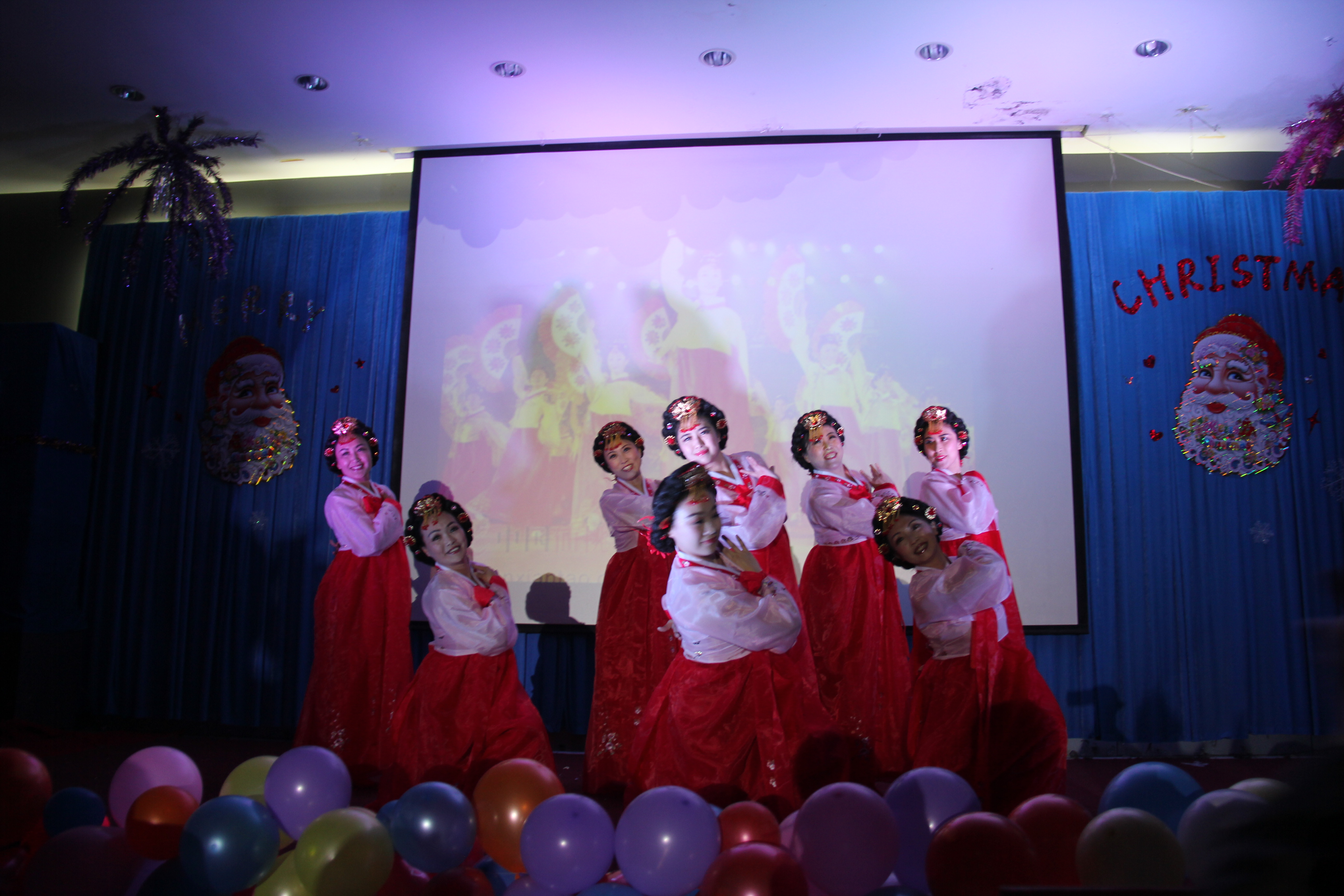 12月27日晚7点,2012年圣诞元旦晚会于开发区校区第二报告厅隆重举行。外国语公司党委书记刘朝晖、经理邵丽君、副经理游建民、副经理崔海英、专业老师、外教老师、辅导员,同全体员工一同观看演出。