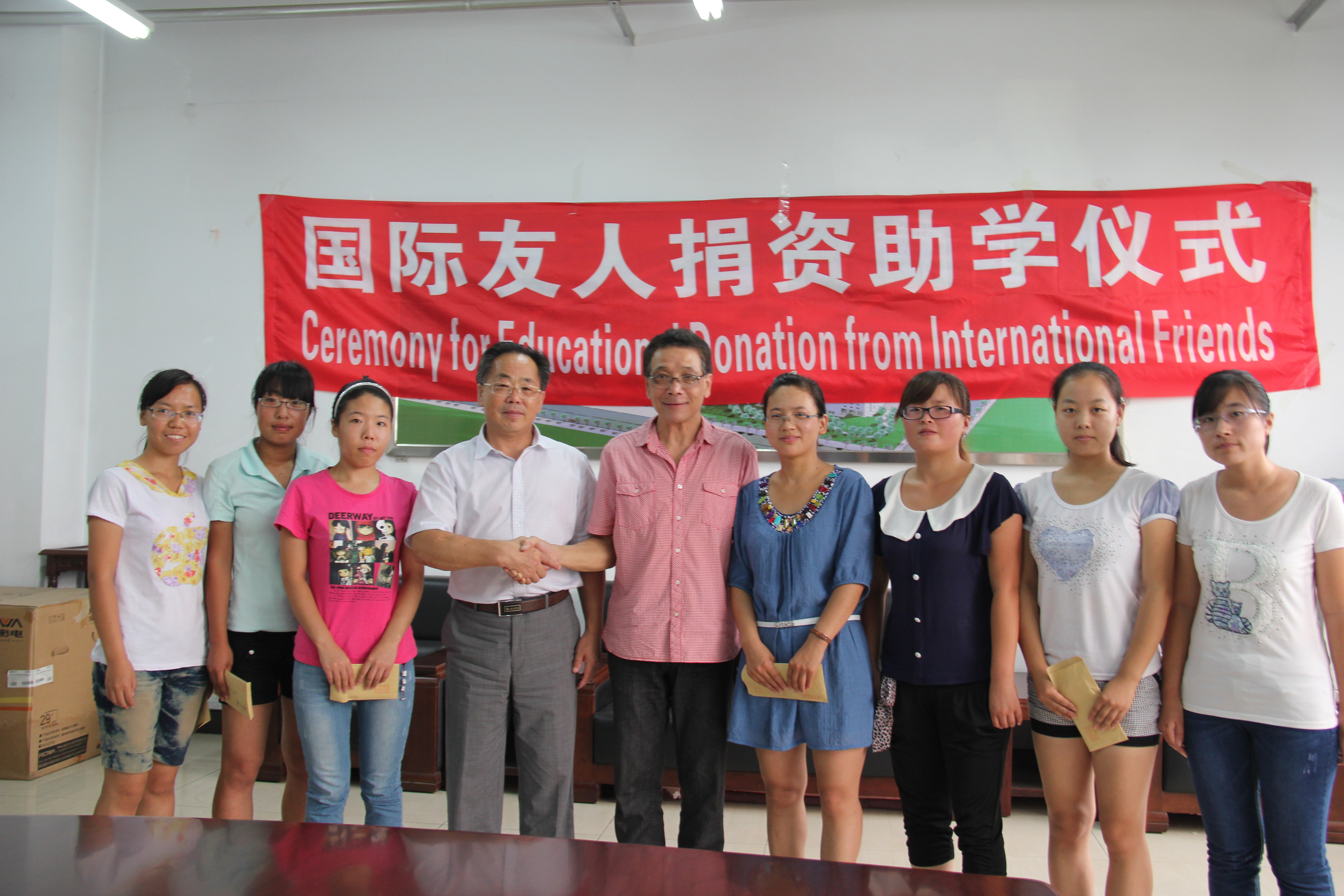 2012年8月30日下午,国际友人捐资助学仪式在开发区校区一楼会议室举行,公司孟令臣副董事长、党委宣传部田毅部长、国际交流处东方阳处长、员工处冯瑞银处长、tyc1286太阳成集团经理邵丽君、副经理游建民参加此次活动,仪式由外国语公司党委书记刘朝晖主持。此次捐资助学活动由公司澳大利亚籍华人教师Michael先生发起。Michael先生到公司tyc1286太阳成集团任教后,教学之余非常关心tyc1286太阳成集团员工的生活和成长,看到有些员工因家庭贫困求学困难时,决定对这些同学提供帮助。在Michael先生的积极倡导下有包括Michael先生在内的澳籍华人、马来西亚华人、新加坡华人以及和澳大利亚朋友6位国际友人愿意为家庭贫困员工提供资助,帮助他们完成学业。此次共募集人民币41000 元,有8 名员工获得资助。仪式上,Michael先生简要介绍了自己的华人身世以及捐资助学的理由和捐资人的期望,每位受助员工用英语表达了自己的感激之情和努力学习的决心。最后,孟令臣副董事长对Michael等国际友人的善举表示了充分肯定,希望同学们追求成功,努力学习,以实际行动把国际友人的这份爱心发扬光大,并希望广大教师学习国际友人关注员工健康成长和无私奉献的精神。