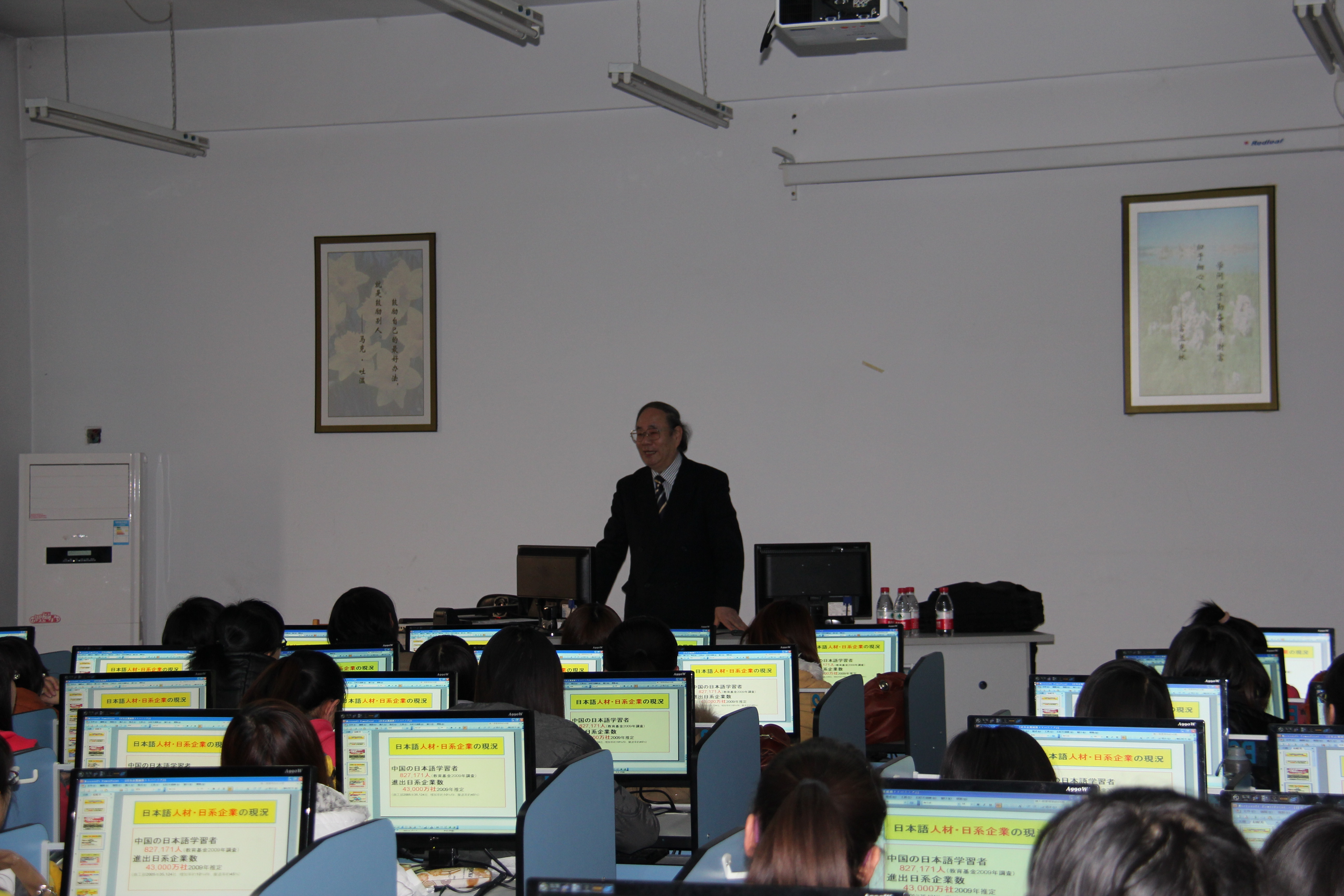 2012年3月12日,日中友好人才育成振兴机构理事长山口隆道先生在tyc1286太阳成集团开发区校区综合楼316教室为应用日语专业员工进行日语讲座。讲座主要内容是日语专业员工就业现状以及就业面试时应注意的各种事项。讲座中,山口先生通过设定面试场景,让员工进行就业面试模拟训练,使员工身临其境,进行实战练习,受益匪浅。该讲座将为日语专业员工就业问题的顺利开展起到极大促进作用。(日语教学部 王丽丽)