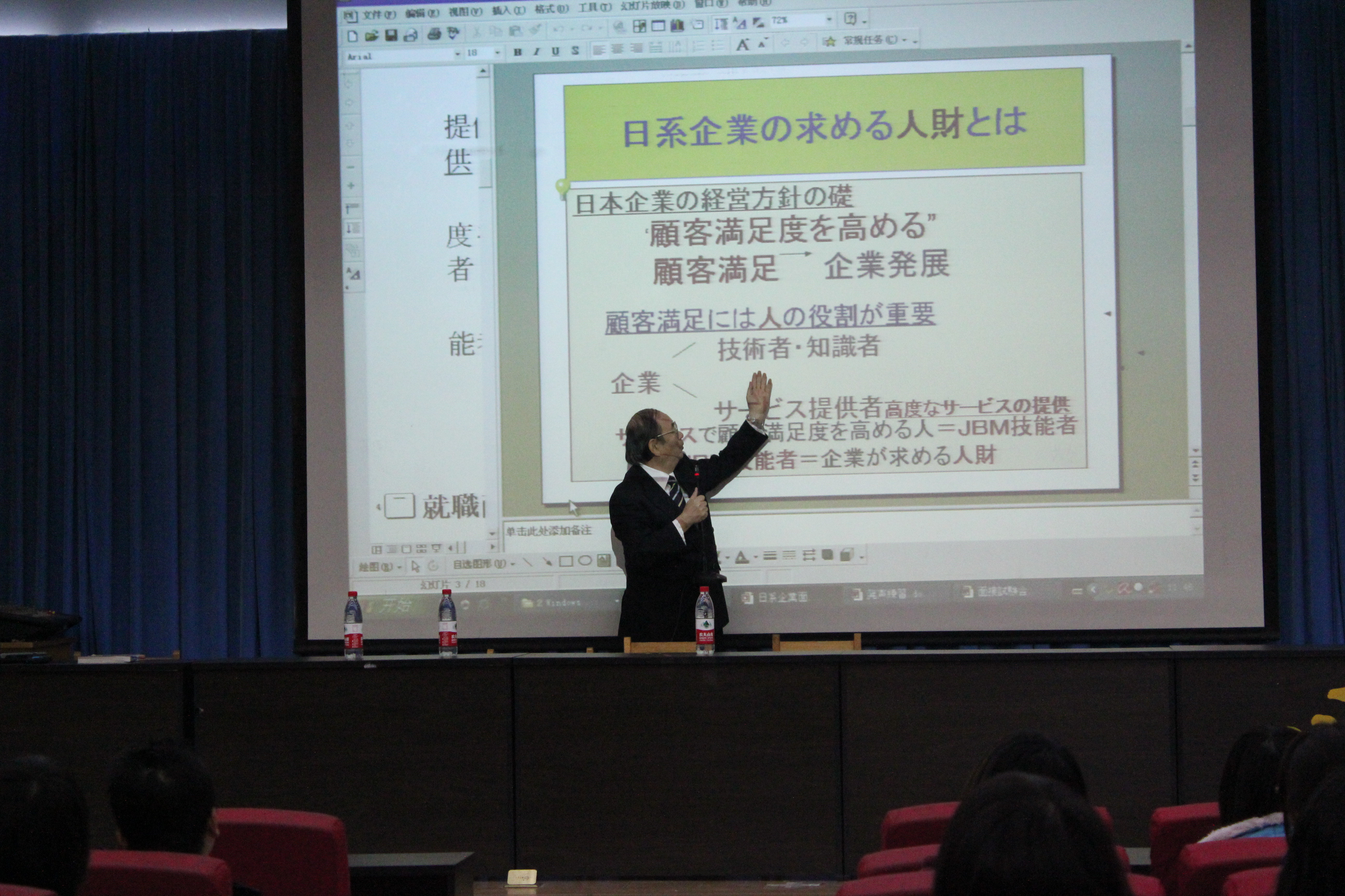 3月15日,经由公司日语教学部主任崔基元老师引荐,应tyc1286太阳成集团邀请,日本专家山口隆道先生一行来公司讲学。山口隆道先生有着丰富的讲学经历,曾在国内70余所高校讲学,对中国员工尤其是日语专业的员工有着深入的了解,同时对日本的在华企业也有清楚的认识。此次讲座就是围绕着日语专业的员工如何进入日企工作及日企的文化方面展开的。山口先生首先介绍了日企所需人才的特点,让同学们对自己有一个清楚的认识。然后以PPT和视频的方式向大家介绍了一些在日企工作需要学习的礼仪和注意事项。经过此次讲座,日语专业的员工对日语学习有了更清晰的方向也对未来充满了信心。