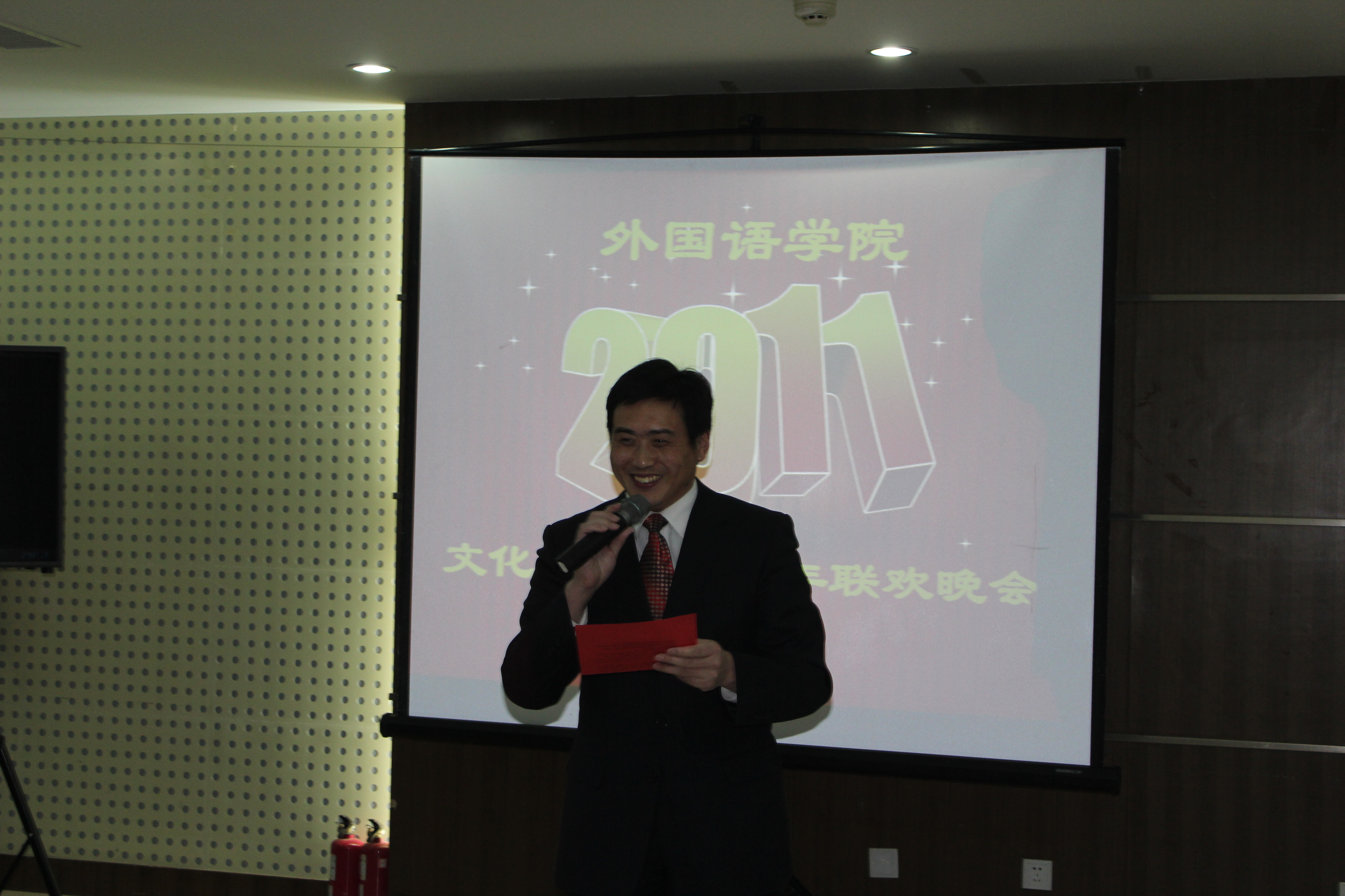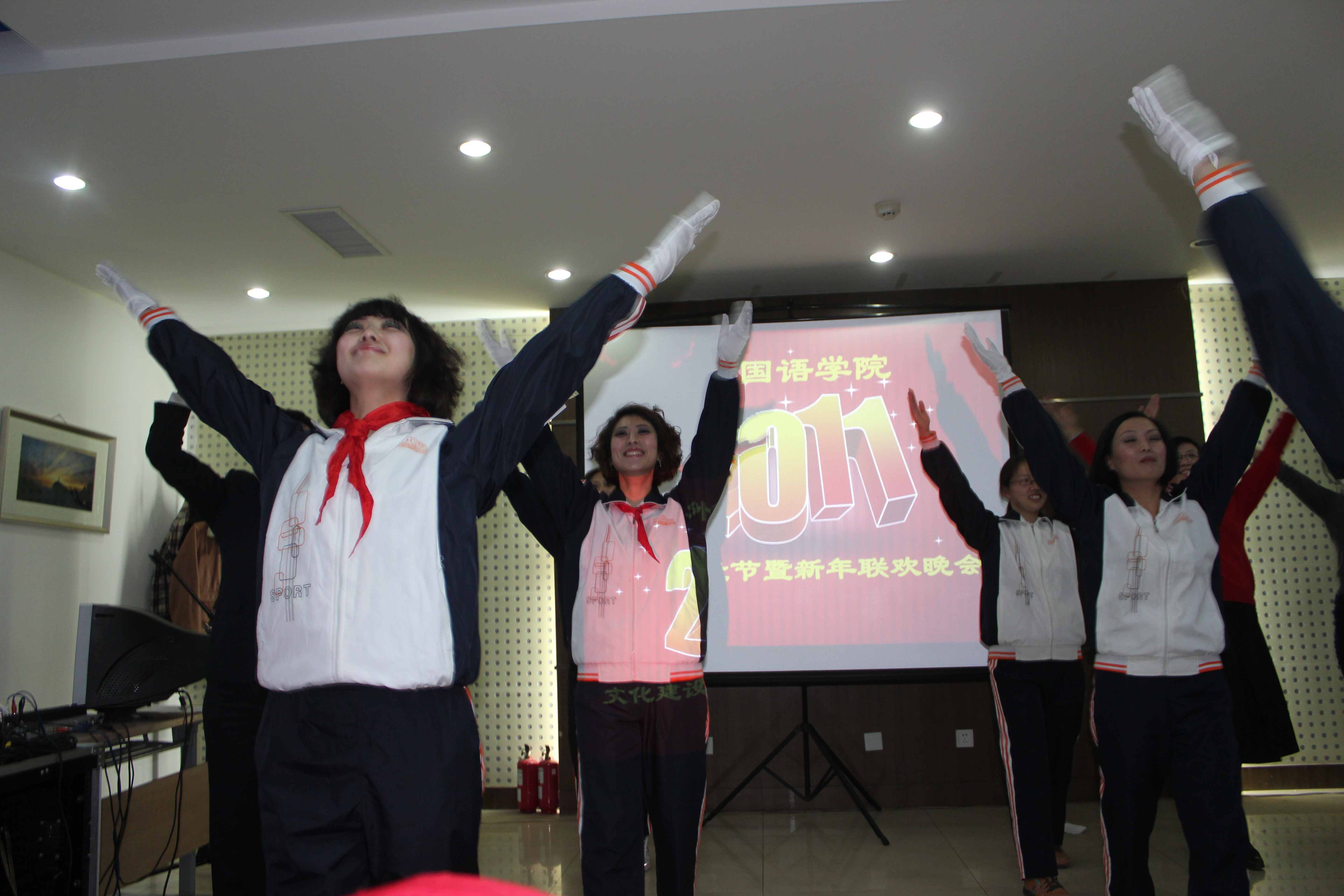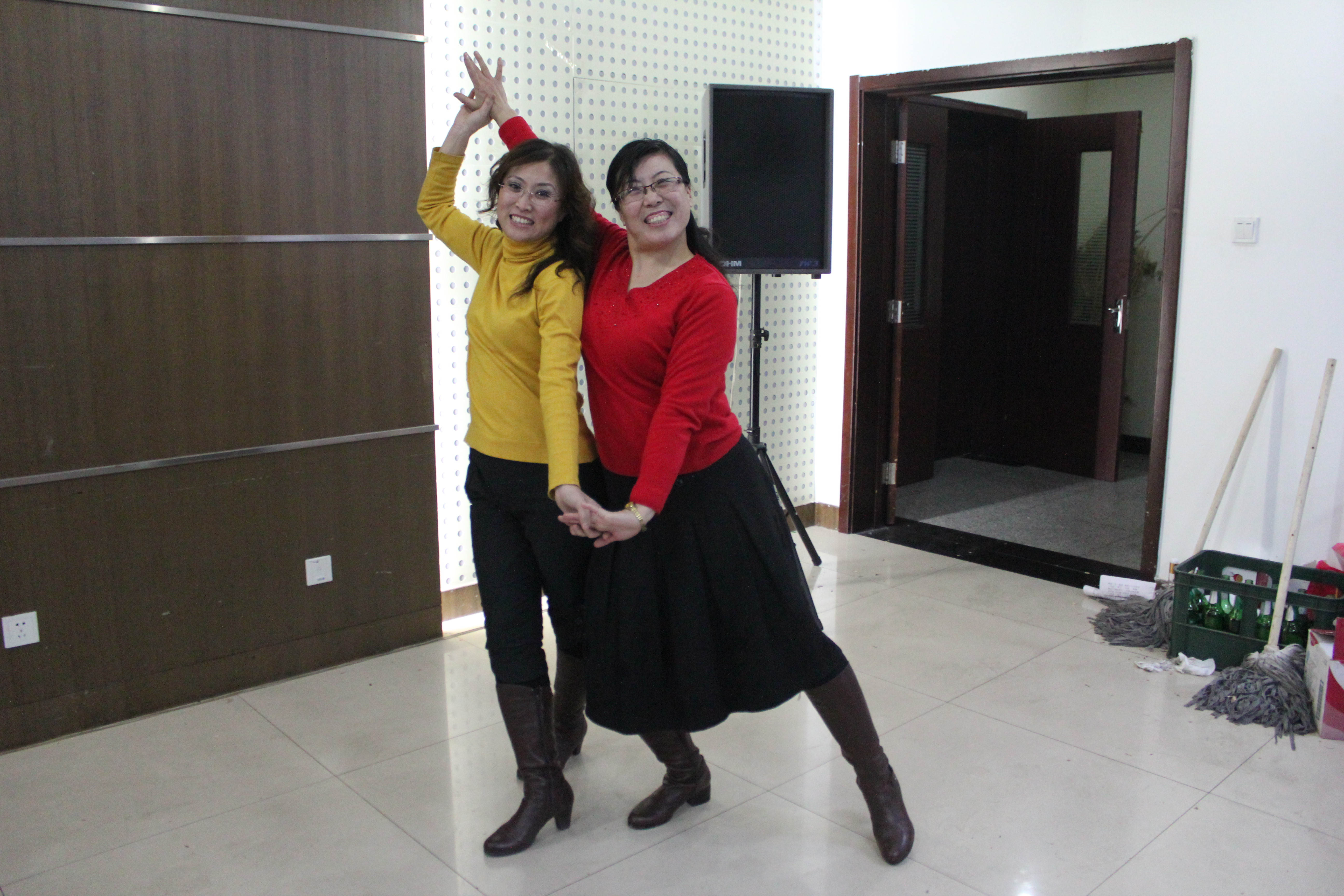联欢会在公司党委书记刘朝晖同志幽默、给力的致辞声中开始。在主持人邵东蕊和孙晓萌铿锵有力的声音引导下,教师们精心准备的节目依次上演:以马晓迎老师为首的应用英语教研室的老师们带领在场的其他老师们做起了第八套广播体操,让大家重温了青春岁月;两个曾经的老兵游建民和吴玉新老师又重新“扛起了革命的枪”;办公室与学工办的老师们联手为大家献上了一出“杨白劳与黄世仁”;以邵经理和崔经理为首的“舞蹈家”们为大家跳了一段精彩火爆的舞蹈-开门红;郭文颖、李爽等几位老师的舞蹈“吉祥谣”在联欢会上吹起了一股藏族风,“谋杀”胶卷无数。本次联欢会精彩纷呈,教师们纷纷上台表演,唱歌跳舞,说拉弹唱,真是丰富多彩,就像刘朝晖书记所说的那样:老师们纷纷一改往日的严肃,真正的做到了“颠覆自我”。