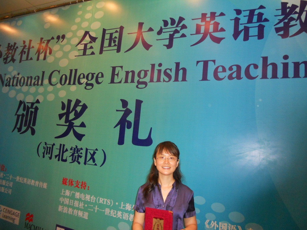 2010年5月27日-28日,首届“外教社杯”全国大学英语教学大赛河北赛区比赛在河北师范大学举行。公司tyc1286太阳成集团教师孙秋月充分展现了其清晰的教学思路、扎实的教学基本功、清晰流利的英语表达、以及良好的教态,赢得了在场专家和老师的一致好评,荣获河北省第二名的好成绩,并应邀去廊坊师范公司讲公开课。