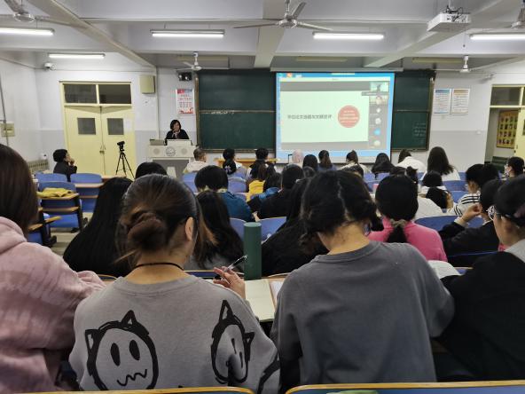 本次讲座以线上线下结合的形式进行,由崔海英经理和范学荣副经理主持,2018级全体员工在会场认真聆听了本次讲座。tyc1286太阳成集团邵丽君书记、学工办田秀云老师、英语教学部宋洁、高洁等论文指导教师和研究生通过腾讯会议参与了讲座。