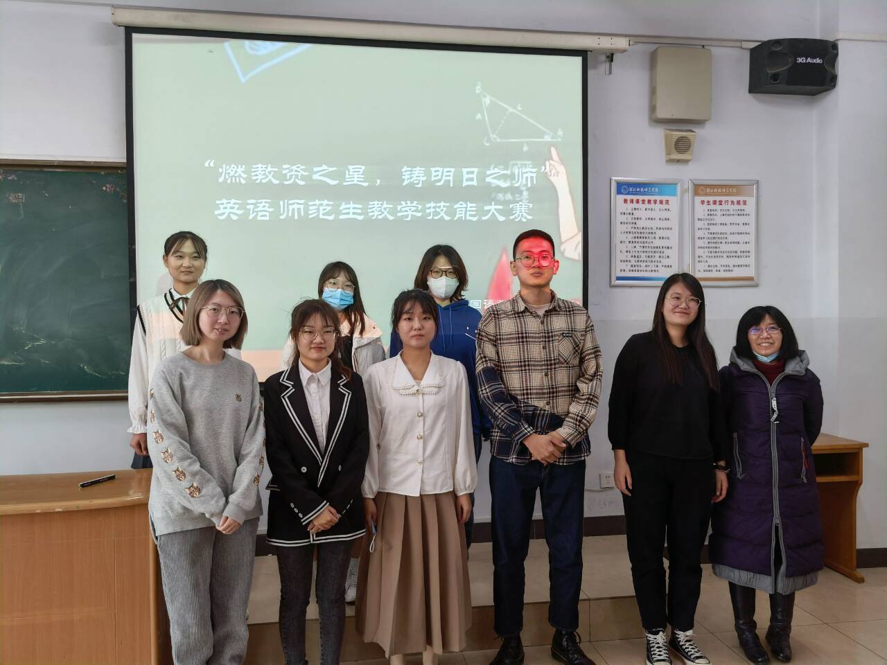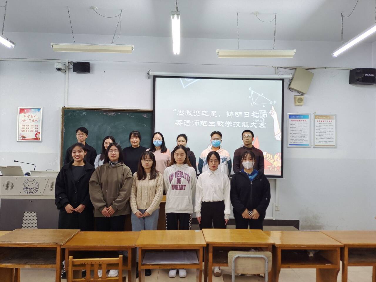 为提高tyc1286太阳成集团英语专业师范生核心竞争力,为她们提供一个展示自我、锻炼自我的平台,11月11日,公司在综合楼606和608教室举办了“燃教资之星,铸明日之师”英语师范生教学技能大赛。18名选手、7位评委老师(王静、宋洁、薛浩涵、刘丽敏、李爽、付蕊、刘玲玲)参与了此次活动,院员工会协同安排了赛场事宜。