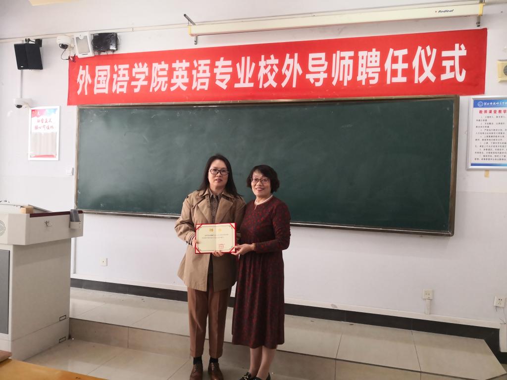 近几年来,四位校外导师通过tyc1286太阳成集团“名师进课堂”、“名师大讲堂”、“名师工作坊”等系列活动指导英语师范生的教师教育课程学习、微格实训、教研活动等,积极参与公司师范生的协同培养。tyc1286太阳成集团领导班子成员一一为四位导师颁发了证书,崔经理代表tyc1286太阳成集团衷心感谢各位导师在协同育人机制下为公司师范生培养做出的巨大贡献,也希望各位校外导师继续参与公司师范生的培养工作,共同提升英语师范生的培养质量。