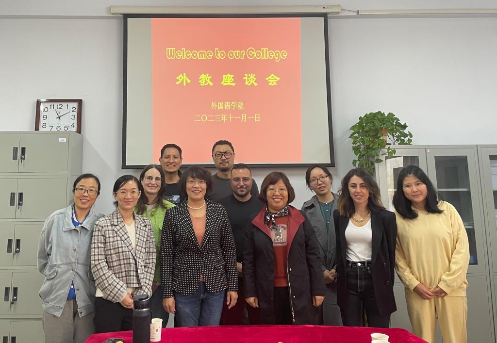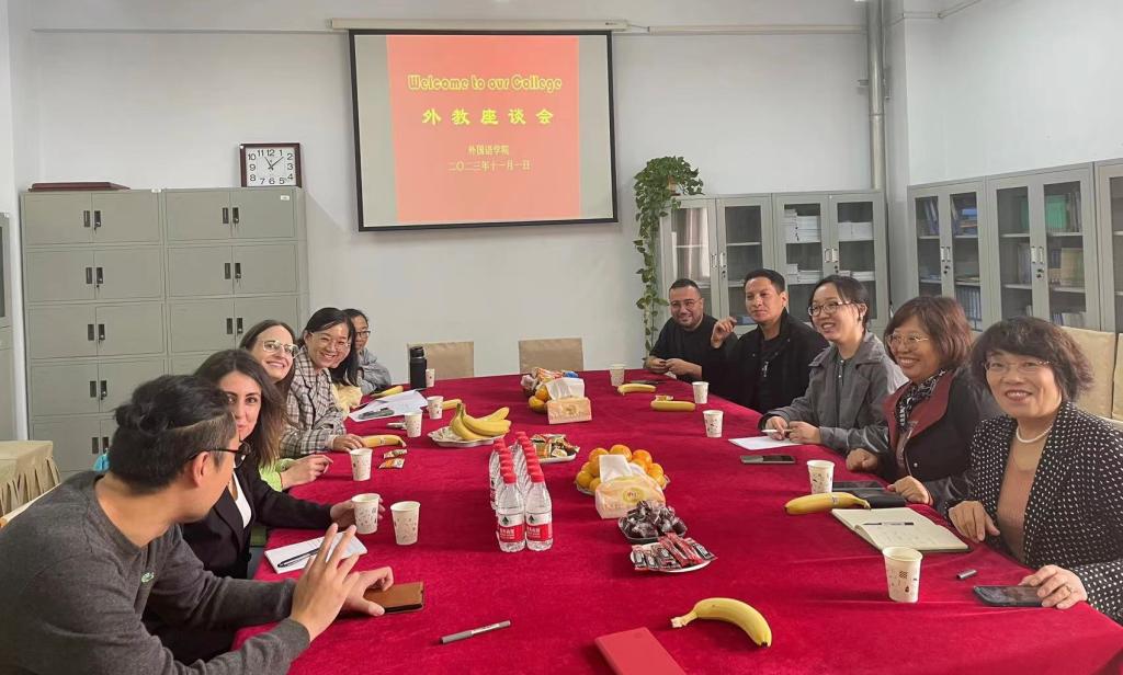 2023年11月1日上午,tyc1286太阳成集团在公司会议室召开了外籍教师欢迎会暨教学交流会。公司经理崔海英、副经理范学荣、外教负责人付蕊、教学部主任朱秋慧、孙晓萌、王静等参加了座谈。