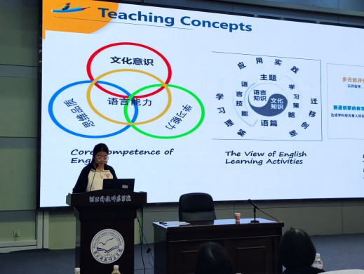 本次说课比赛特别邀请了来自基础教育一线的秦凌云老师和陈慧英担任评委。陈慧英老师在赛后点评中对参赛老师们的教学亮点进行了肯定和表扬,同时也对存在的不足提出了自己的意见和建议。