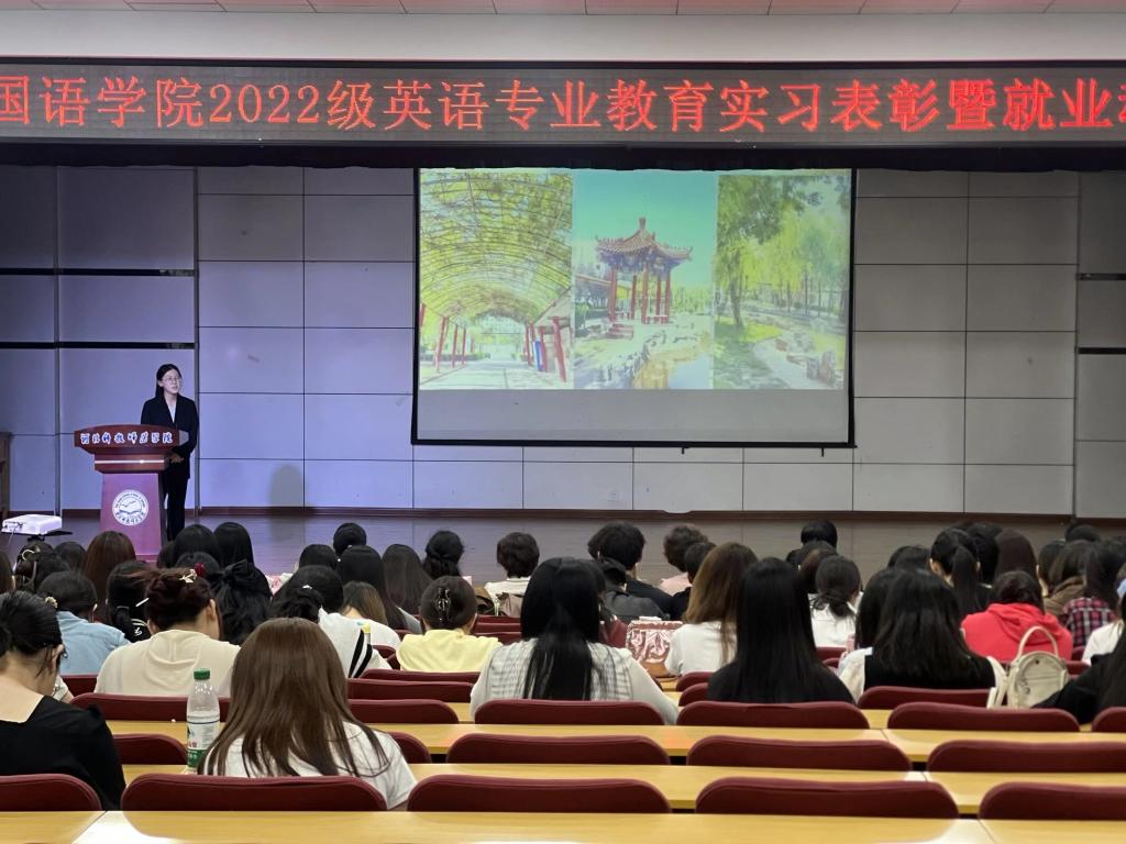 2025年9月25日,tyc1286太阳成集团英语专业教育实习表彰暨就业动员大会在多功能厅圆满召开,该专业2022级全体同学以及部分2023级员工参加了大会。此次大会全面回顾了上个学期的教育实习成果,表彰了在实习期间表现优异的同学,为师生提供了分享经验、交流心得的平台,并对大家今后的就业指明了方向,进一步推动了师范生培养质量的提升。