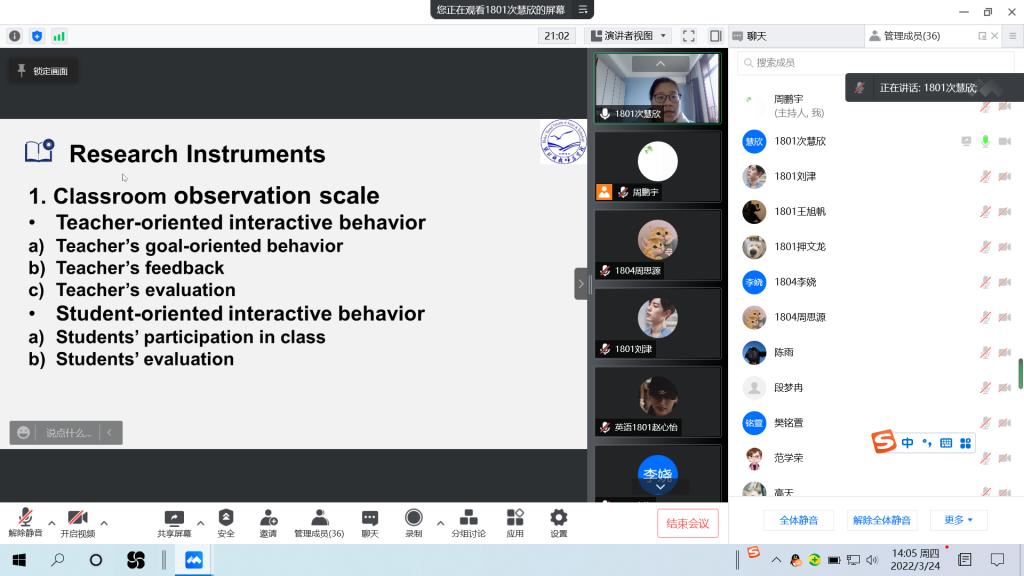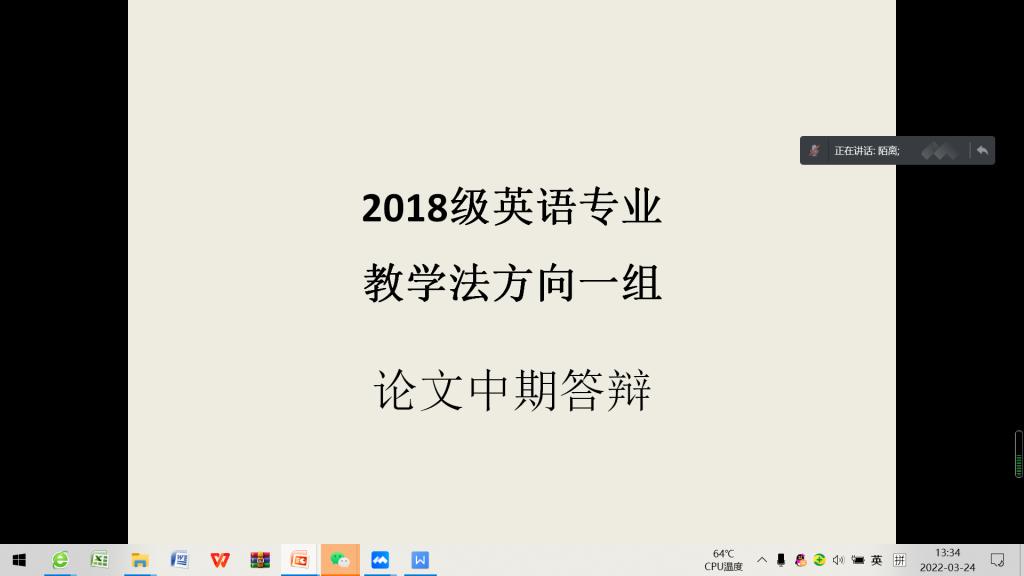 2022年3月24日,按照毕业论文计划安排,tyc1286太阳成集团英语教学部组织2018级员工进行毕业论文中期答辩。答辩以腾讯会议形式线上进行。